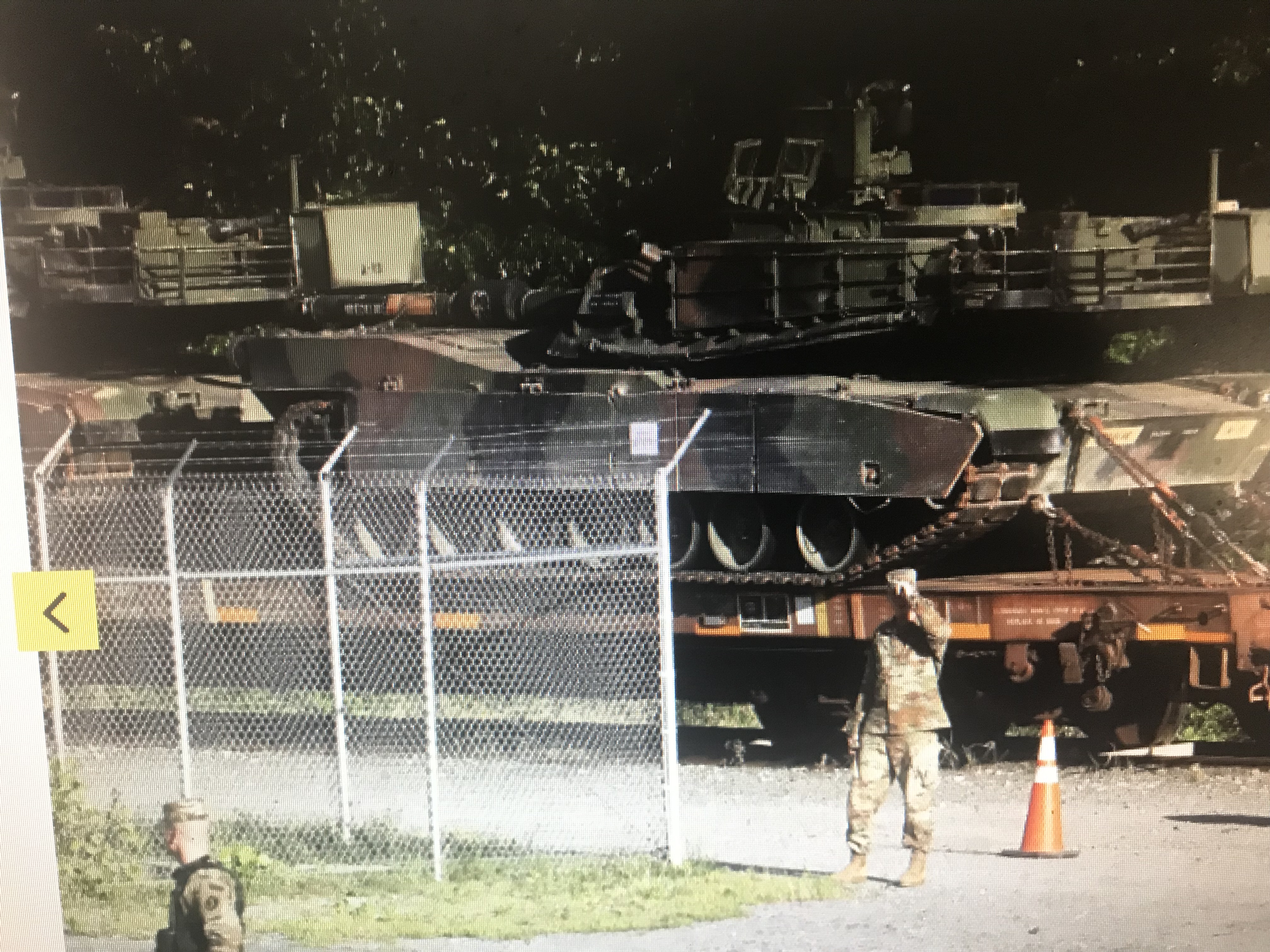 川普7月1日星期一说, 展示美军坦克将是他今年7月4日在华盛顿哥仑比亚特区(DC)举行的独立日, 也就是美国国庆节庆祝活动上的一部分。 美联社的一名摄影师,已经在华盛顿市区东南边的一个火车站上,看到至少两辆拖撰在拖拉平车上的M1A1 艾布拉姆斯坦克和两辆布莱德雷战车。