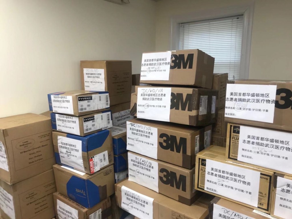 此时此刻,居住在大华府的华人朋友们也在积极的采取行动: 一个原本30多人的微信群在4天之内迅速发展到了500人,成为这次华盛顿华人运送救灾物资的中坚力量。这个群是由华府地区的一位非常有爱心的中国商人发起和组织协调的。他们在短短的八天时间里就筹集了价值人民币一百多万的物品并且把它们送到了武汉第四人民医院;第二批捐赠物品包括(N95口罩一万零一百六十七个,医用普通口罩三百个,防护服五百七十三套,医用护目镜六百九十七个,医用手套三万一千七百双 ,手术帽五千个)正在准备搭乘最后一趟中国国际航空公司的航班从纽约飞往北京, 等待武汉慈善总会盖章;第三批由世界银行捐赠的6千件防护服目前正在积极寻找适合的航班看是否能把它们及时送往武汉。为了帮助处在疫情中的同胞, 华府的华人朋友们正在行动!