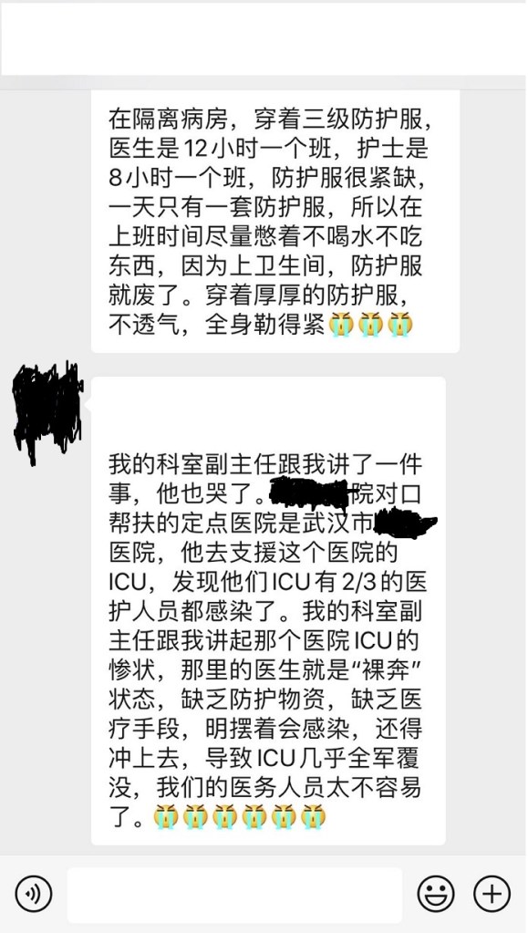 下面是来自武汉抗疫前线的一名医生所发出的珍贵消息