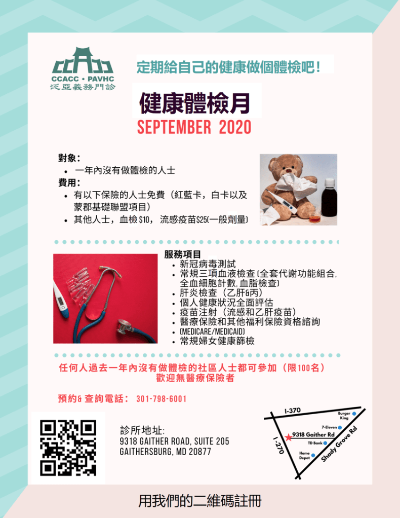 如有疑问,请致电240-393 5950, 或电邮panasianclinic@ccacc-dc.org。