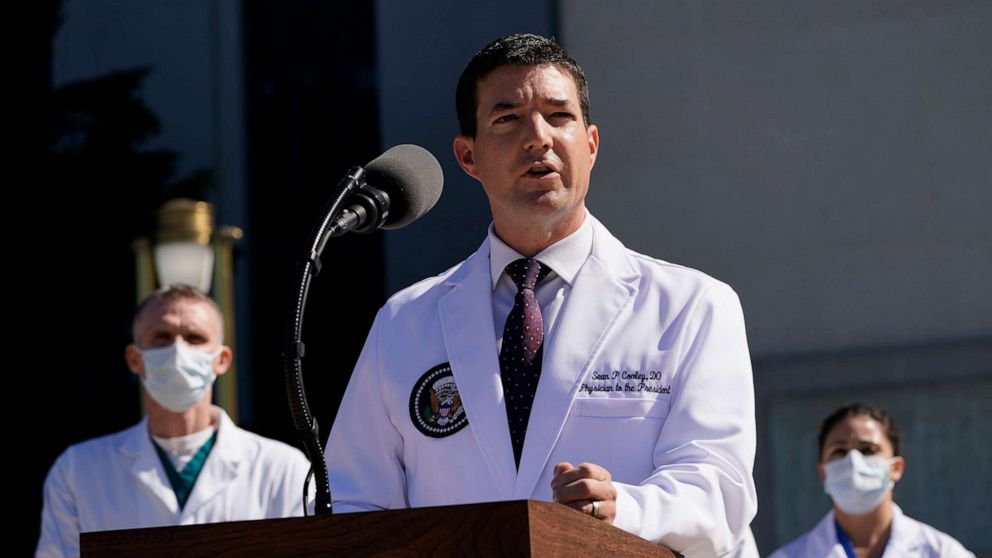 自特朗普公布他感染上新冠病毒, 医生们在沃尔特·里德国家军事医学中心新闻发布会上向公众更新的病情状况与白宫工作人员的说法截然不同。