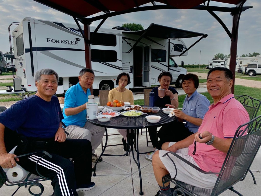 大多数人都有过自驾游的经历,都游览过很多美国国家/州立公园,都欣赏过很多壮丽秀美的风光。但是,开着房车(RV)去旅行的朋友可能为数不是很多。不久前,同乡会会员王建新等6位平均年龄69岁,合计年龄414岁的朋友,尝试体验美国房车文化,丰富自己的阅历和晚年生活,开着房车,历时20天,行程近5000英里,游览了大提顿(GrandTeton),黄石(Yellowstone),总统山(Mt.Rushmore), 恶地(Badlands)等国家公园及沿途的城市和自然景观,一路美不胜收,收获满满。他们在出行之前花了几个月时间,制定了详细而周密的旅行路线和游览方案,选择旅游资源丰富的目的地,来回环线,不走回头路,并且为了确保旅行过程的顺利,他们做好了财务预算,进行了分工,准备了遇事协商处理等应急备用方案。