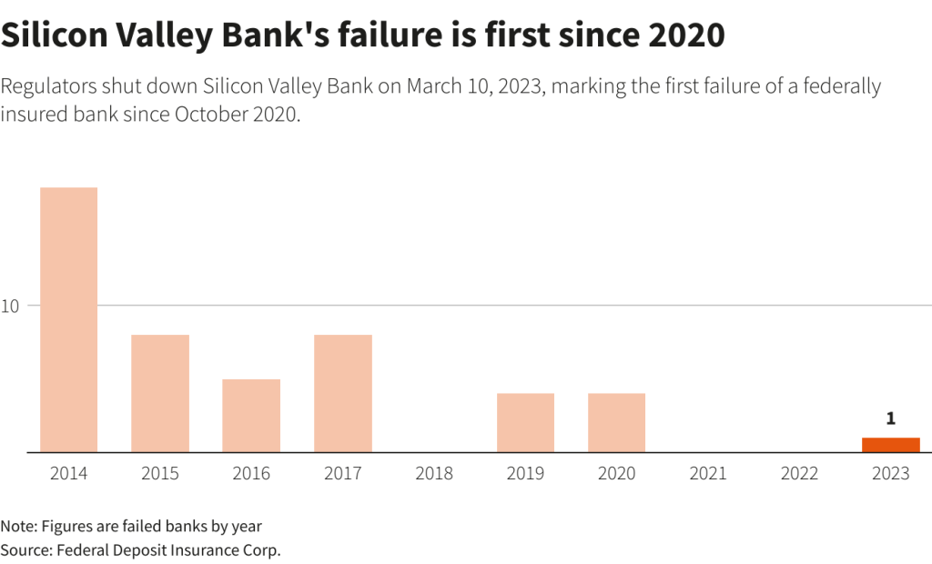 这家总部位于加州圣克拉拉的银行在去年年底被评为美国第16大银行,资产约为2090亿美元。这家以初闯科技为投资重点的银行突然倒闭的细节还一团混乱,但美联储去年的激进加息政策似乎起了主要负面作用,因为这损坏了其作为著名参与者的初创企业的金融状况。