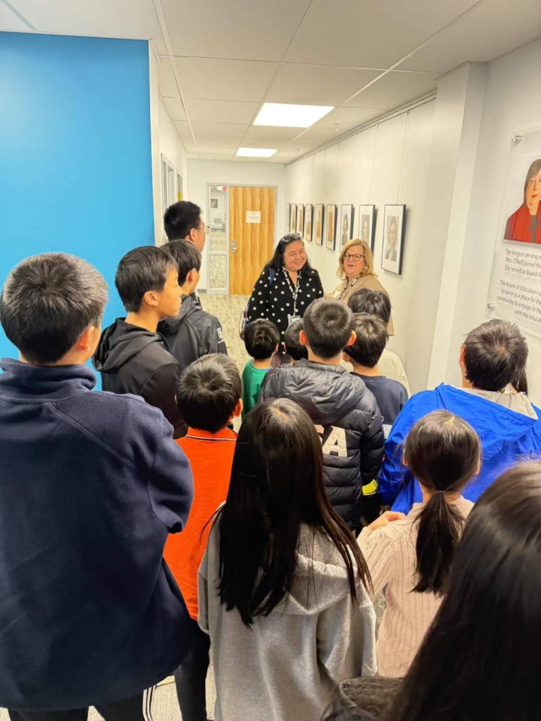 在工作人员带领下,学生们参观了委员会办公室、会议走廊和历史展墙,了解各部门的职能及教育系统如何服务全郡的学生和家庭。